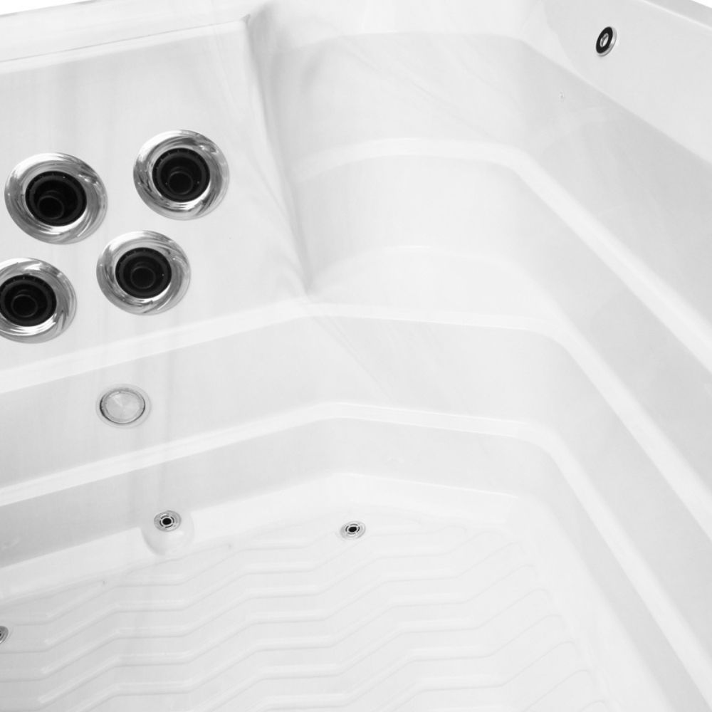 Swimspat är utrustat med fem kraftfulla swimjets som tillsammans skapar ett jämnt, riktat vattenflöde – perfekt för simning, kondition och styrketräning på plats. Varje jet bidrar till ett stabilt motstånd som gör att du kan hålla rätt teknik och tempo, oavsett träningsnivå.
