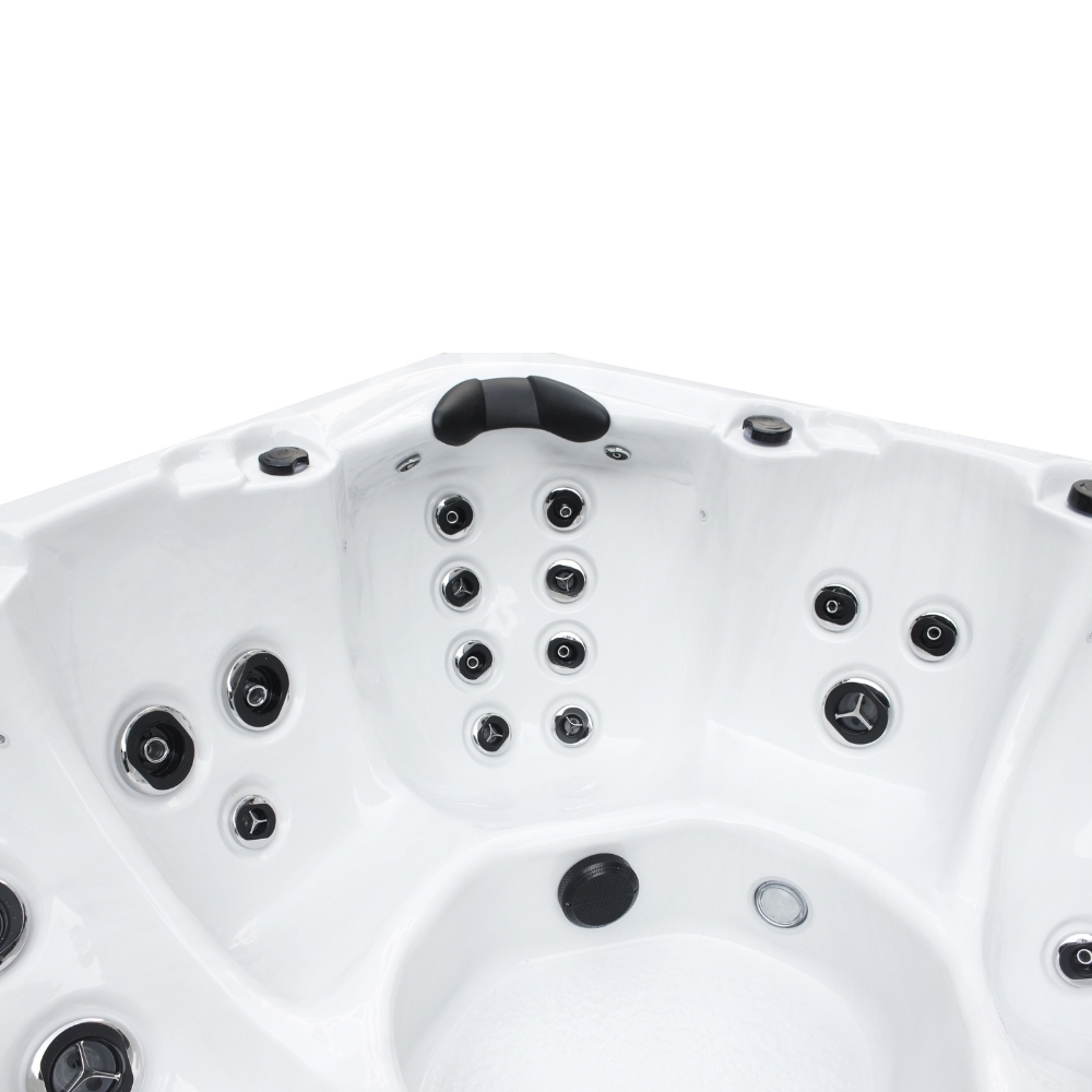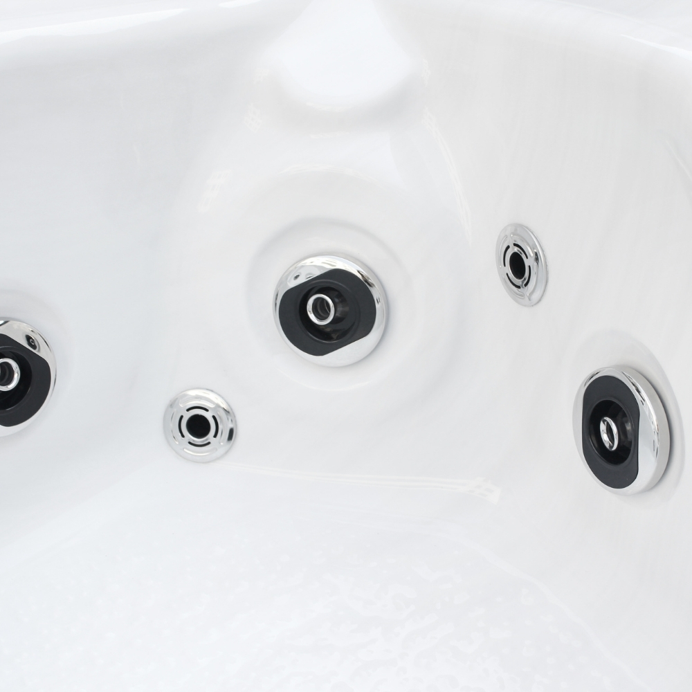 Spabadet är designat för att ge optimal komfort, med sitt- och loungeplatser som formar sig efter olika kroppstyper och erbjuder både effektiv och avslappnande massage. Varje plats är utformad för att ge rätt stöd och bästa möjliga avkoppling, oavsett om du vill sjunka ner i ett djupt massagesäte eller luta dig tillbaka i en loungeplats.
