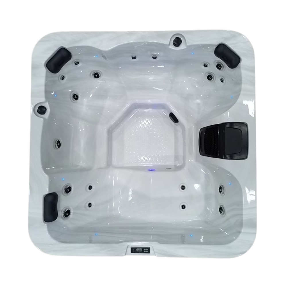 Spabadet är designat för att ge optimal komfort, med sitt- och loungeplatser som formar sig efter olika kroppstyper och erbjuder både effektiv och avslappnande massage. Varje plats är utformad för att ge rätt stöd och bästa möjliga avkoppling, oavsett om du vill sjunka ner i ett djupt massagesäte eller luta dig tillbaka i en loungeplats.